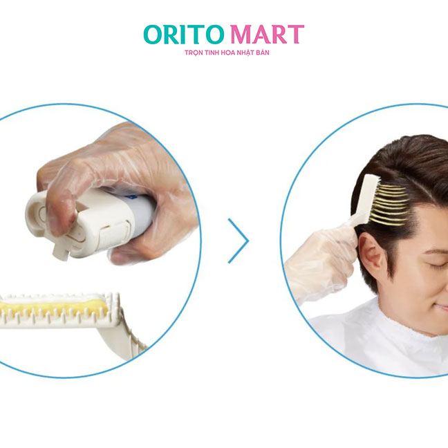 Bấm nút để bơm thuốc nhuộm vào phần rãnh giữa của lược có sẵn trong hộp sản phẩm